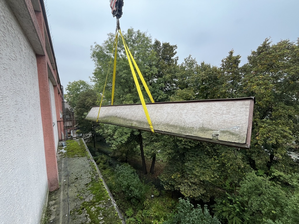 Demontaż balustrad 1,5 t dźwigiem 50 t
